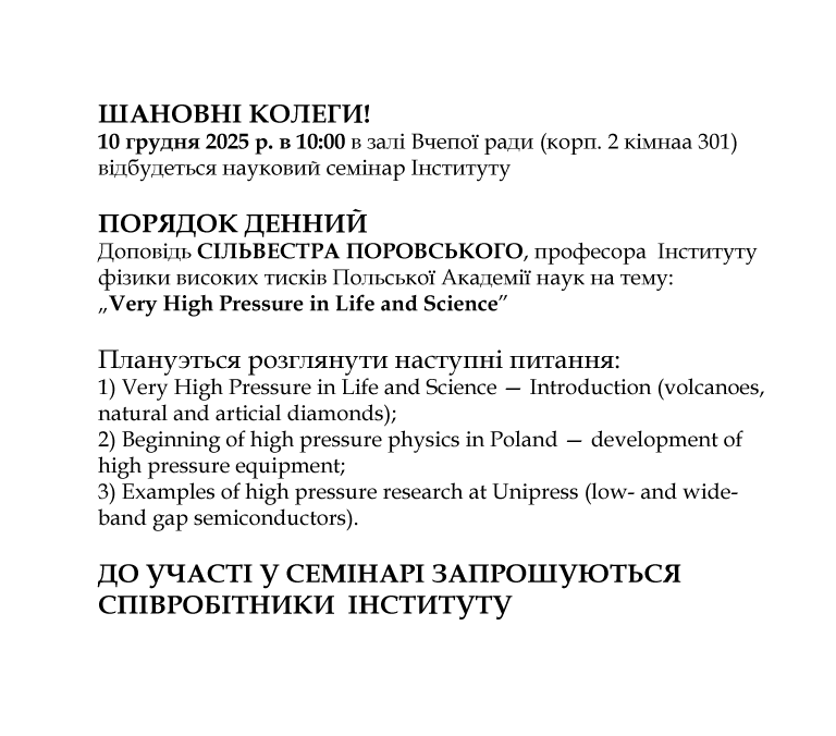 Місце: Інститут надтвердих матеріалів ім. В.М. Бакуля НАН України,